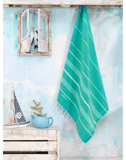 Naf Naf Accessoires Et Serviettes De Plage Fouta Serviette De Plage Vert Et Bleu En Coton 90×170 Cm