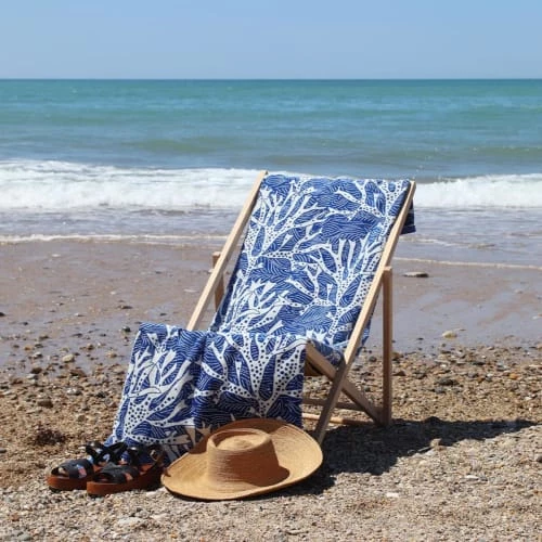 Febronie Décoration De Jardin Fouta En Coton Bande Blanche 100×200 Bleu Jean