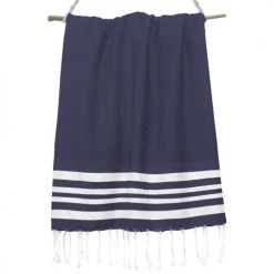 Febronie DĂ©coration De Jardin Fouta En Coton 100×200 Bleu Ciel Et Bleu Marine